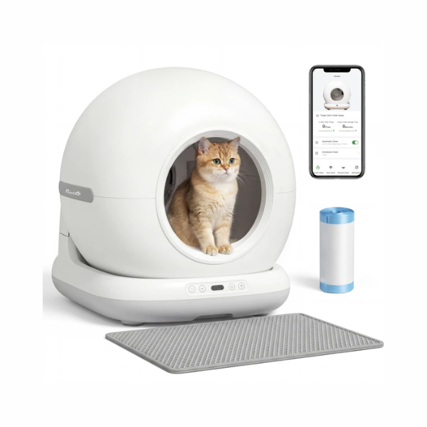 The PawHut 72L self cleaning odor removal app control exrta large cat litter pod has a spacious private design automatic scooping self-cleaning litter robot is equipped with a solid aromatherapy modern design to make your home smell fresher. Twelve precision sensors and an anti-pinch design keep your cat safe and App to record up to 6 cats you can control and manage your self-cleaning cat tray remotely with the Tuya App personalize cleaning times track weight and set schedules. PawHut self cleaning odor removal app control exrta large cat litter pod entrance size: D 23.6cm, overall cat litter pod size: H 53cm x L 58.1cm x W 47.5cm. Please note: use mineral cat litter using clumping cat liter is not recommended.